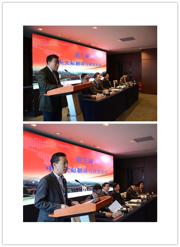 论坛开幕式由我校副校长祝朝伟主持。我校校长李克勇、中央编译局中央文献翻译部主任杨雪冬、天津外国语大学副校长余江先后致辞。