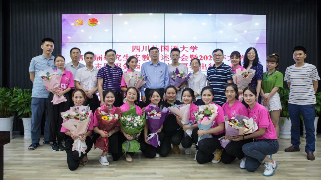 7月17日下午,我校第五届研究生支教团述职会暨2020年大学生志愿服务西部计划志愿者出征仪式在西区行政楼C117举行,党委书记邹渝出席仪式。党委组织部、党委学工部、研究生院、教务处、招就处、团委等相关职能部门主要负责人,英语学院、新闻传播学院、马克思主义学院党总支书记,我校第五届、第六届研究生支教团全体成员,2020年西部计划志愿者代表,第七届研究生支教团预备营成员参加仪式。仪式由校团委书记丁欢主持。