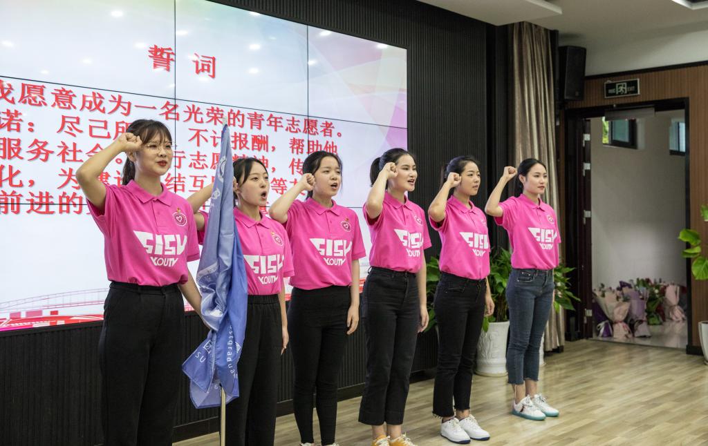 “我愿意成为一名光荣的青年志愿者。我承诺:尽己所能……”第六届研究生支教团成员高举右手进行宣誓。