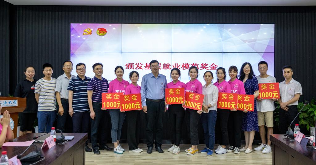随后,与会领导和嘉宾为志愿者代表颁发基层就业模范奖金。