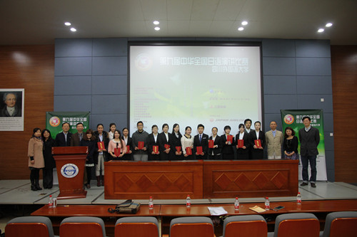 经过激烈角逐,日语系2011级胡凌同学摘冠。晋学新、黄芳、杨伟、杨羽获优秀指导教师奖。