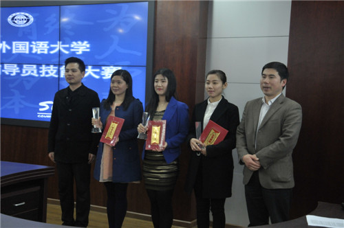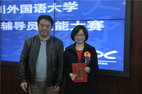 四川外国语大学党委书记明国辉、副校长郑白玲出席比赛现场。西南大学党委学生工作部副部长、学生处副处长、教育部辅导员研修基地西南大学基地、西南交通大学基地示范培训项目专家周翱,重庆师范大学生命科学学院党委副书记、第二届重庆市辅导员职业技能大赛第一名获得者胡小强,四川外国语大学党委宣传统战部部长崔光军,四川外国语大学西班牙语系党总支书记孙蔓作为评委莅临现场。同时,我校学工部、研工部领导以及各院系党组织书记、副书记和全体的辅导员老师到现场观赛。竞赛最终评出一等奖一名,二等奖二名,三等奖三名,优秀奖八名。