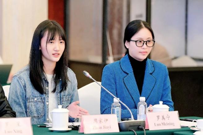 座谈会上,罗美宁同学和周家伊同学作为四川外国语大学歌乐书院“当代中国故事数媒传播书院班”的优秀学员代表也分享了一些她们对中外文化传播的体会。据悉两位同学所在的团队获得了第三届“外研社·国才杯”国际传播力短视频大赛全国决赛的冠军和季军。