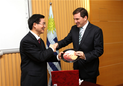 李克勇校长与乌拉圭共和国驻华大使费尔南多·卢格里斯互赠礼品