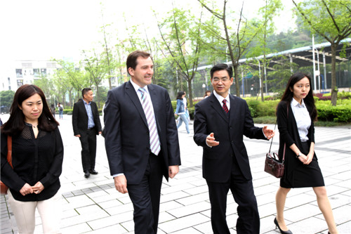 李克勇校长陪同乌拉圭共和国驻华大使费尔南多·卢格里斯一行参观新校区