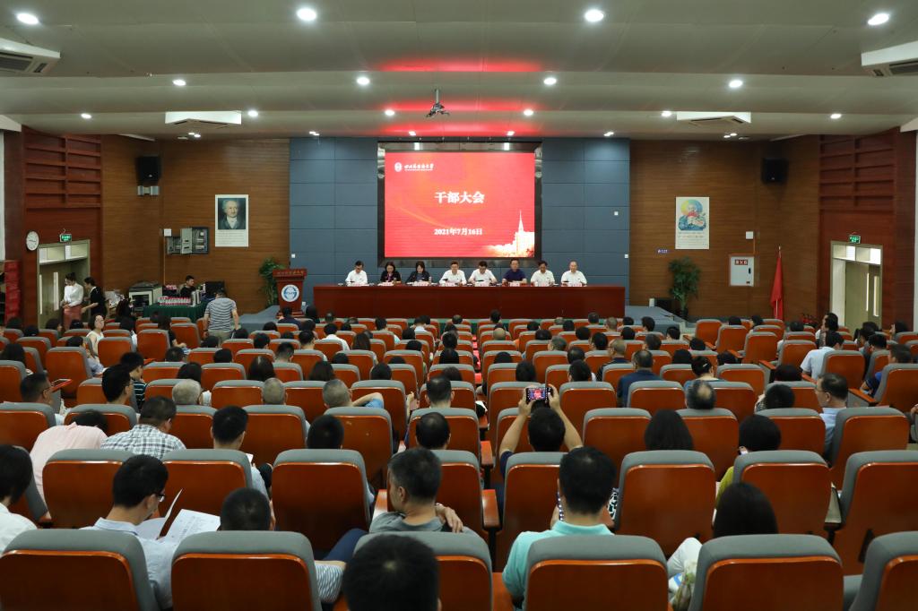 7月16日上午,学校召开干部大会。全体校领导,全体中层领导干部,市、区级人大代表、政协代表和党派代表,全体组织员、科级干部、辅导员参加会议。会议由党委副书记苟朝莉主持。
