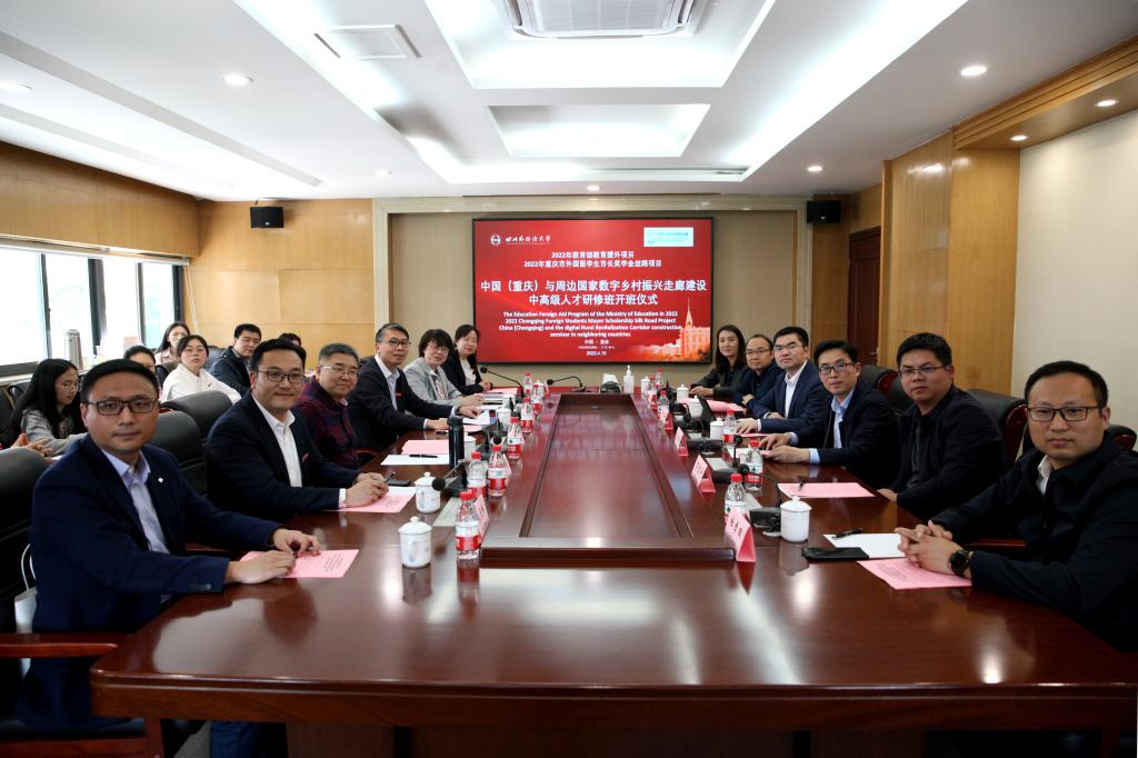 “中国(重庆)与周边国家数字乡村振兴走廊建设中高级人才研修班”项目既是2022年教育部教育援外项目,也是2022年重庆市外国留学生市长奖学金丝路项目,旨在向斯里兰卡、巴基斯坦、老挝和乌兹别克斯坦等周边国家的反贫困、乡村振兴中高级管理人才展示我国脱贫攻坚、乡村振兴的成功经验和做法,彰显我国脱贫攻坚的伟大历程以及未来乡村发展的宏伟战略,在亚洲周边国家逐步培养一批知华、友华、助华的优秀青年,推动中国中西部地区与世界经济深度融合。开班仪式的顺利进行,不仅为接下来为期一个月的培训创造了良好的开端,也激励了学员们在接下来的学习中更加努力。