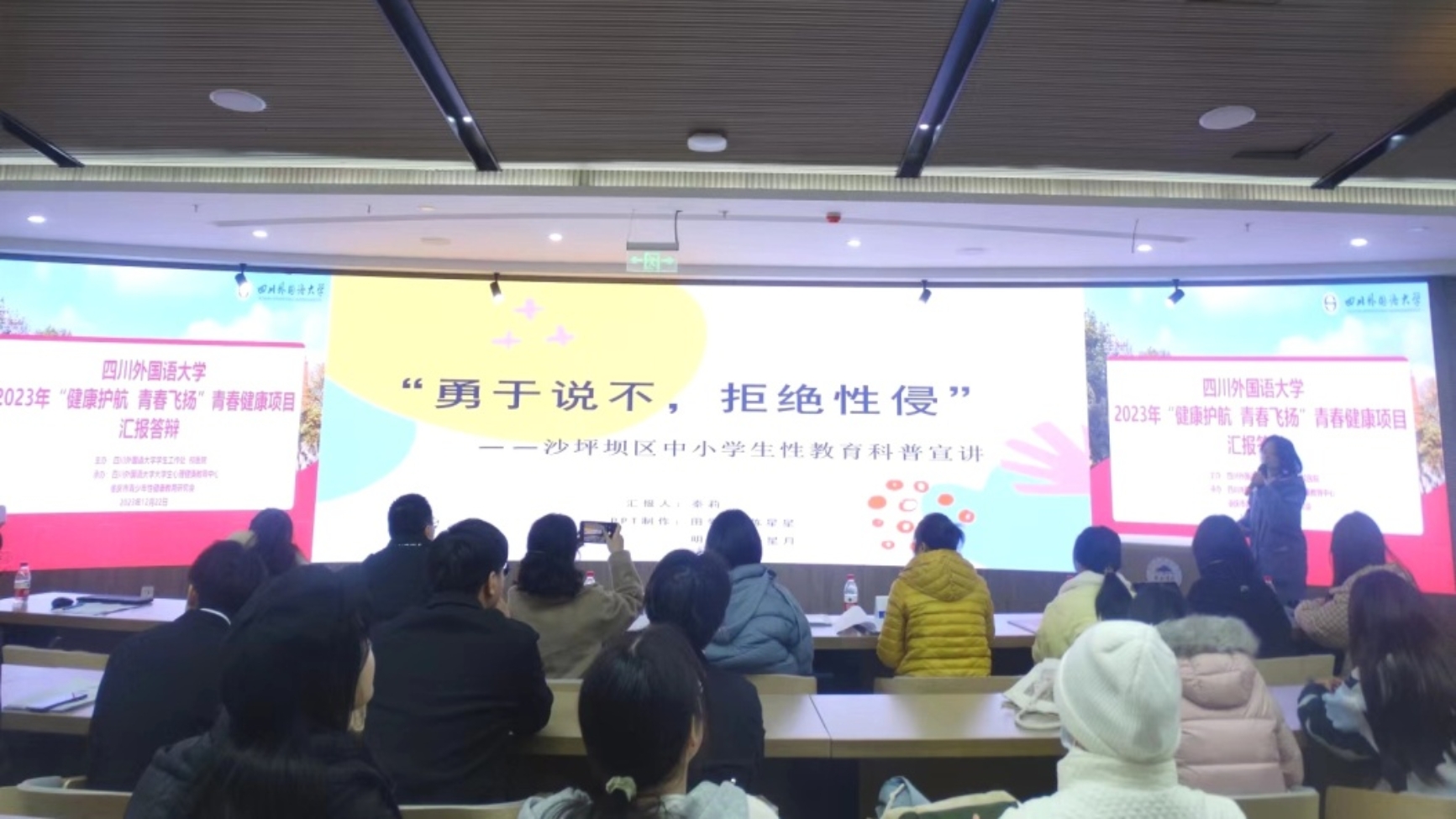 2023年12月22日下午,我校成功申报的中国计生协2023年“健康护航 青春飞扬”青春健康项目汇报答辩在歌乐书院举行。此次活动由学生工作处、校医院联合主办,重庆市计划生育协会群众工作部副部长廖群、重庆市江北区疾病预防控制中心流病科科长周海龙、学生处副处长何敏、国际法学与社会学院党总支副书记李佳、校医院院长刘新担任评审专家,全体答辩项目成员参加了本次会议。