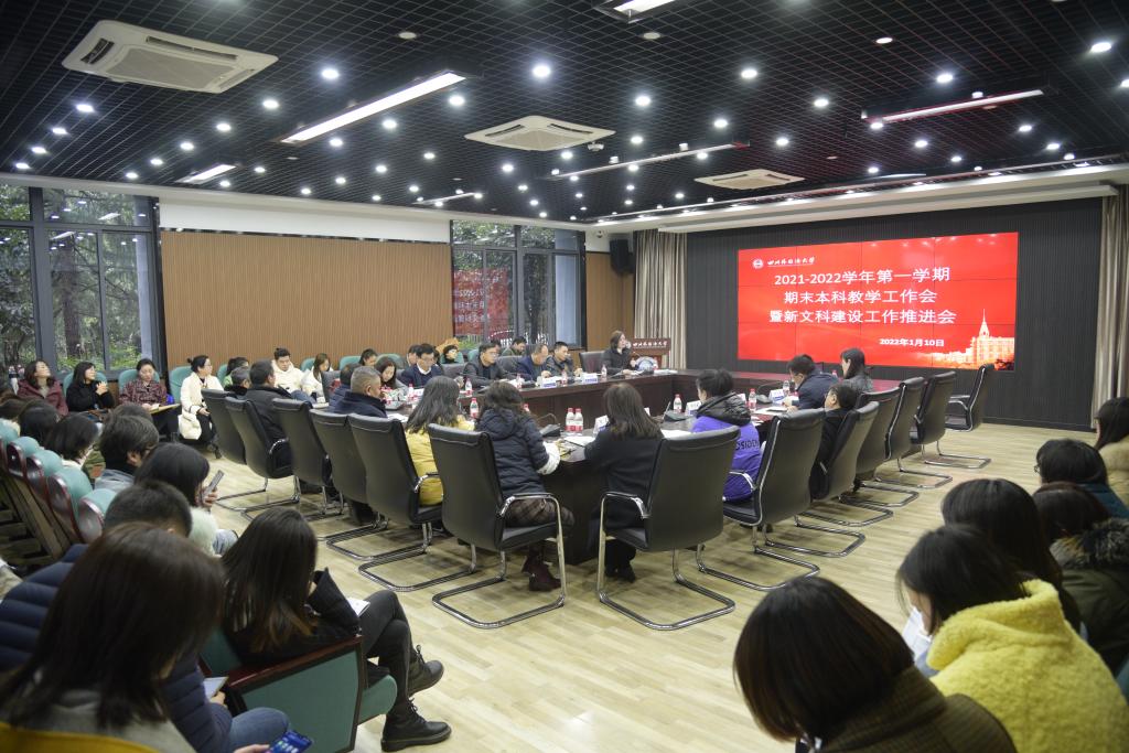 2022年1月10日下午,2021-2022年第一学期期末本科教学工作会暨新文科建设工作推进会在西区立德楼C栋117会议室顺利召开。党委书记邹渝、校长董洪川、副校长严功军,相关职能部门负责人和各院系负责人出席了会议。会议由副校长严功军主持。