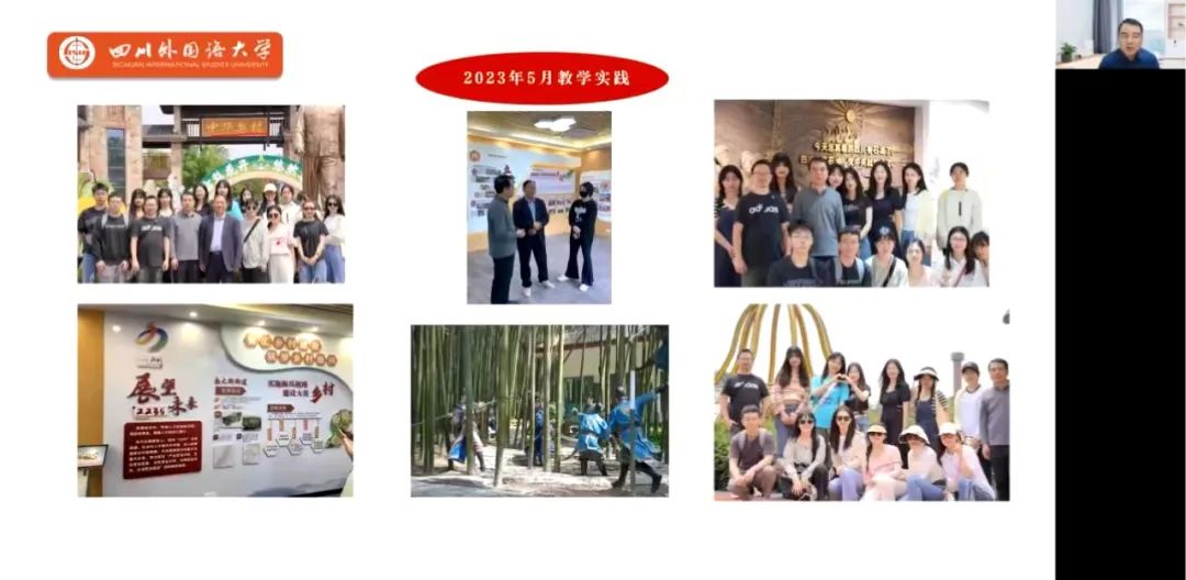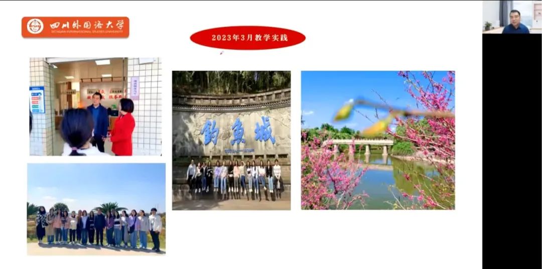 在研讨交流环节,主持人吕继群老师首先对刘帅锋老师的示范分享进行了总结。她指出,川外是“三进”工作试点高校之一,刘老师的教学很好地融入了学校一些较好的形式和成果,既能非常用心地去挖掘教材的价值,又能立足于教材,从广度和深度上进行进一步的拓展,课堂内容丰富,教学形式多样。吕继群老师强调,川外法语专业在“三进”教学中开展的美丽乡村实践考察活动是很多老师感兴趣的部分,可谓是教学中富于创意的一大亮点。最后,刘帅锋老师对冯明侠、陈昉等老师提出的“如何让教学内容更加生动?”“怎样选择平行文本翻译练习?”“怎样使用课后拓展练习和思考题?”等问题进行了交流分享,教研会圆满结束。