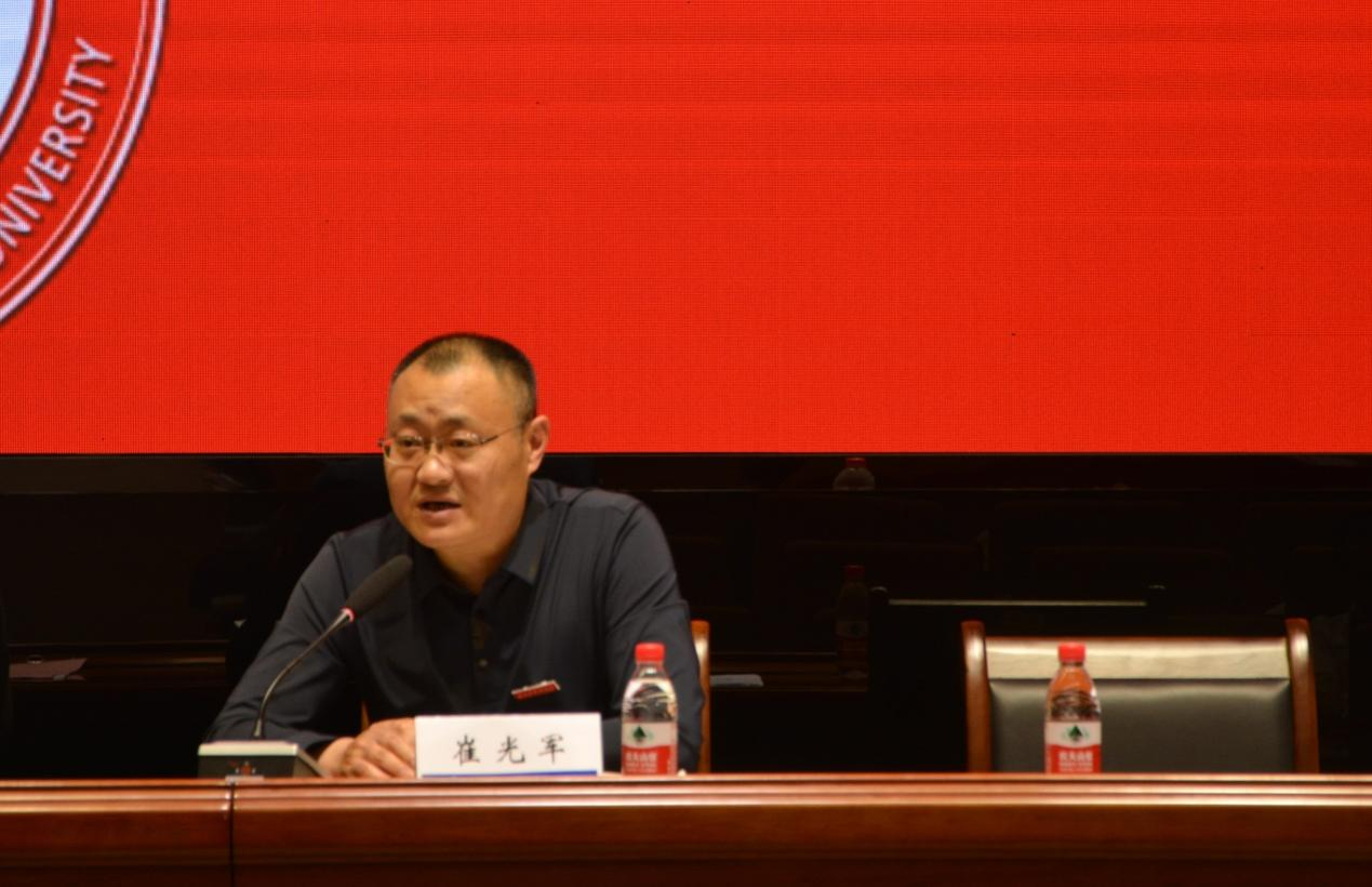 随后,相关职能部门通报近期工作情况。校团委曹海燕通报了近期团学工作,并动员各学院积极参加外语晚会;宋雷介绍了近期思想宣传教育的工作重点;崔光军通报了我校近期辅导员、学生等数据,强调了学生安全,介绍了近期重点工作。