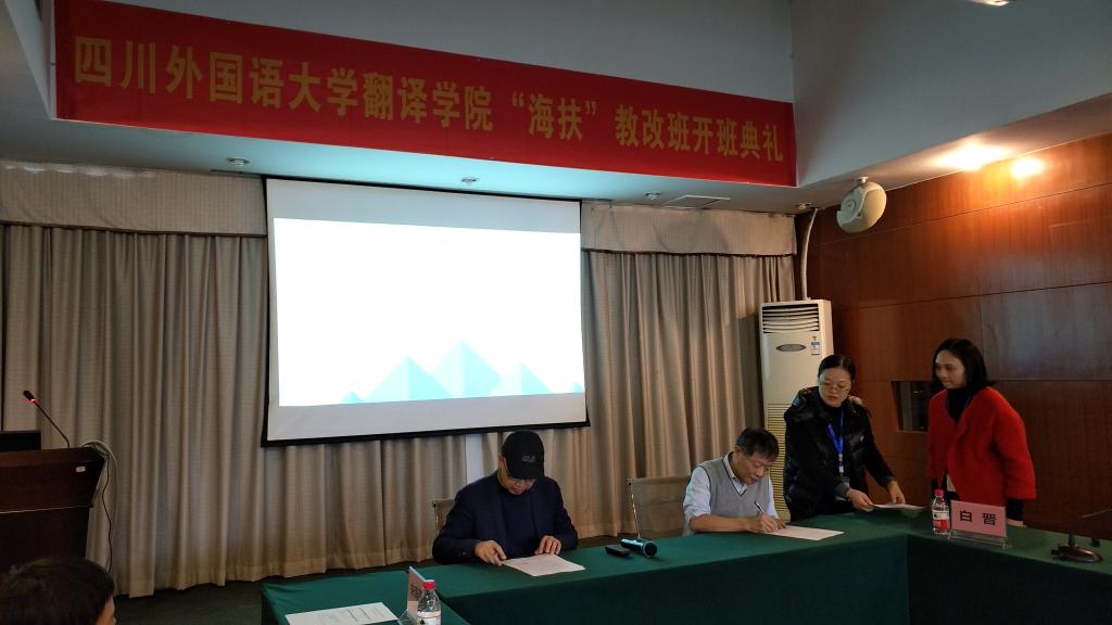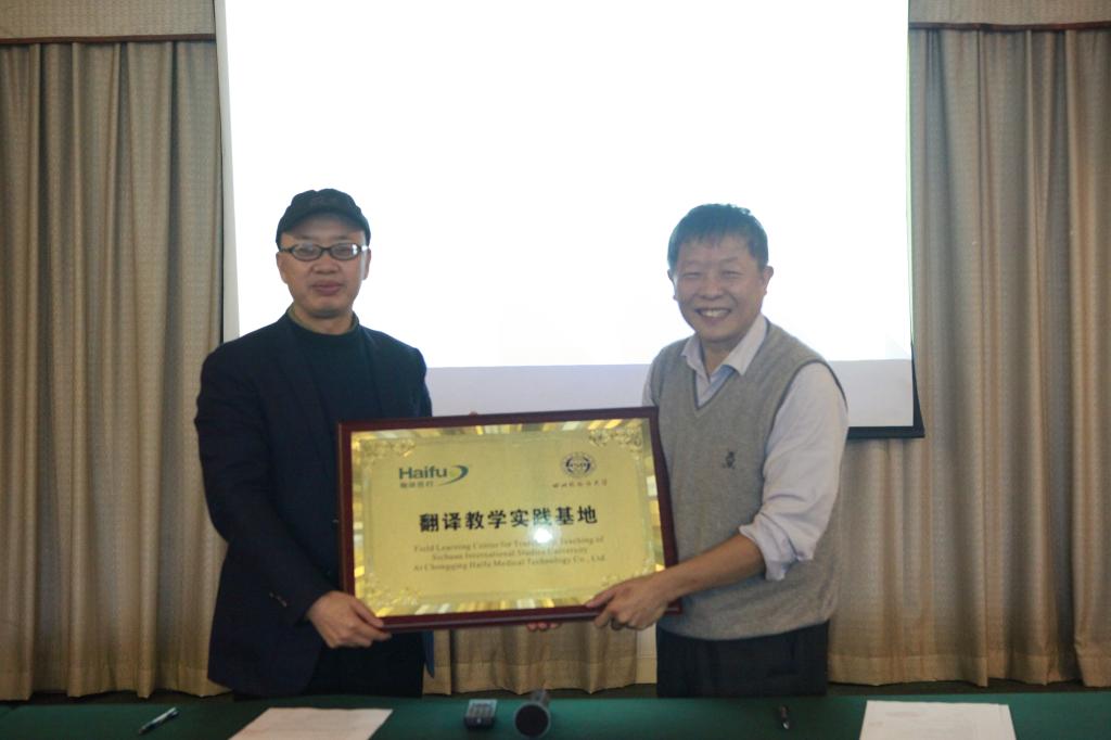 随后,翻译学院院长胡安江与海扶公司董事长王智彪签署合作协议,双方进行授牌仪式。