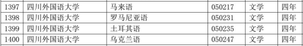 3月3日,教育部发布了《关于公布2019年度普通高等学校本科专业备案和审批结果的通知》(教高函〔2020〕2号),我校申报的马来语、罗马尼亚语、土耳其语、乌克兰语4个非通用语种专业通过教育部备案,可于2020年9月正式招生,这是我校主动对接国家“一带一路”倡议人才培养需求,加强国际化建设,大力发展非通用语种专业建设方面取得的重大突破。学校围绕国家开放战略和重庆经济社会发展需求,不断加强非通用语专业建设,成立了重庆非通用语学院,积极申办人才紧缺的非通用语专业,全面推进复语/复专业人才培养模式,突出人才培养国际化、复合型特色,办学效果显著。至此,我校本科专业增至47个,其中外语语种达到22个。