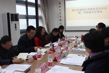 24日下午,评估专家组分别召集了商务英语学院教师座谈会和学生座谈会,认真听取了教师和学生对于本科教学的意见、建议、以及愿望。两场座谈会参会人员都很热烈,参与性高,交流坦诚。之后,评估专家组调阅了商务英语专业资料,认真审阅了试卷、论文、教学大纲等资料,并作了详细的记录。24日晚上,专家组召开了内部会议,汇集反馈意见。25日上午,专家组访谈了商务英语学院主要领导。上午10点,评估意见反馈会正式召开。邓海教授主持会议,我校副校长董洪川教授、教务处副处长姜孟教授出席会议。