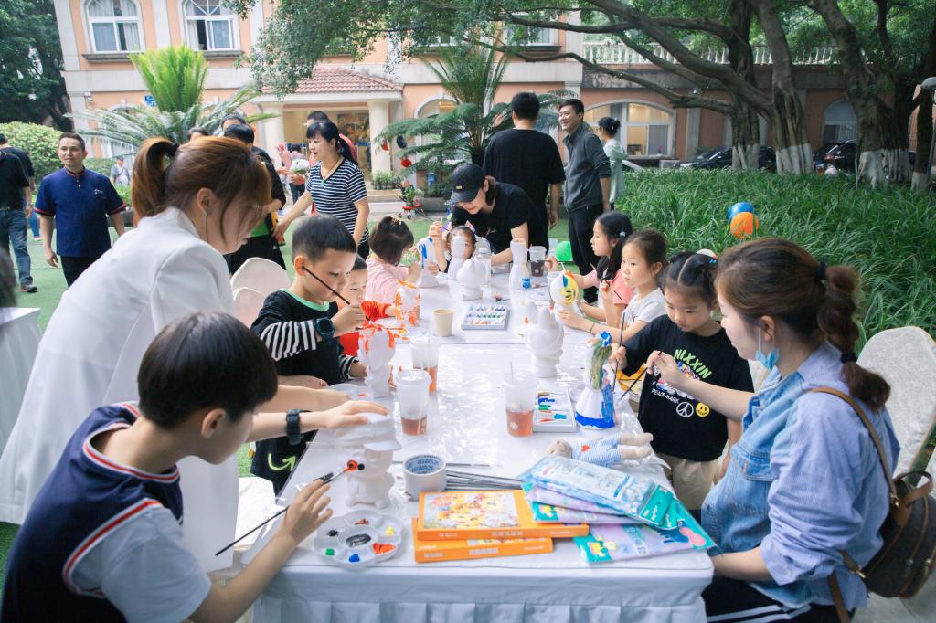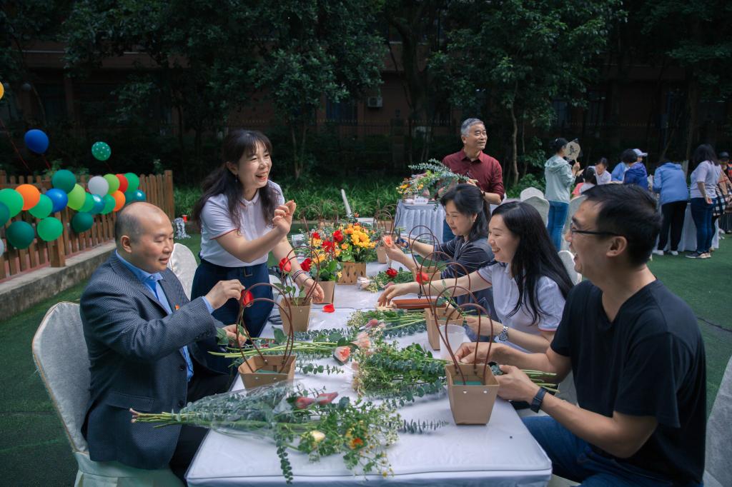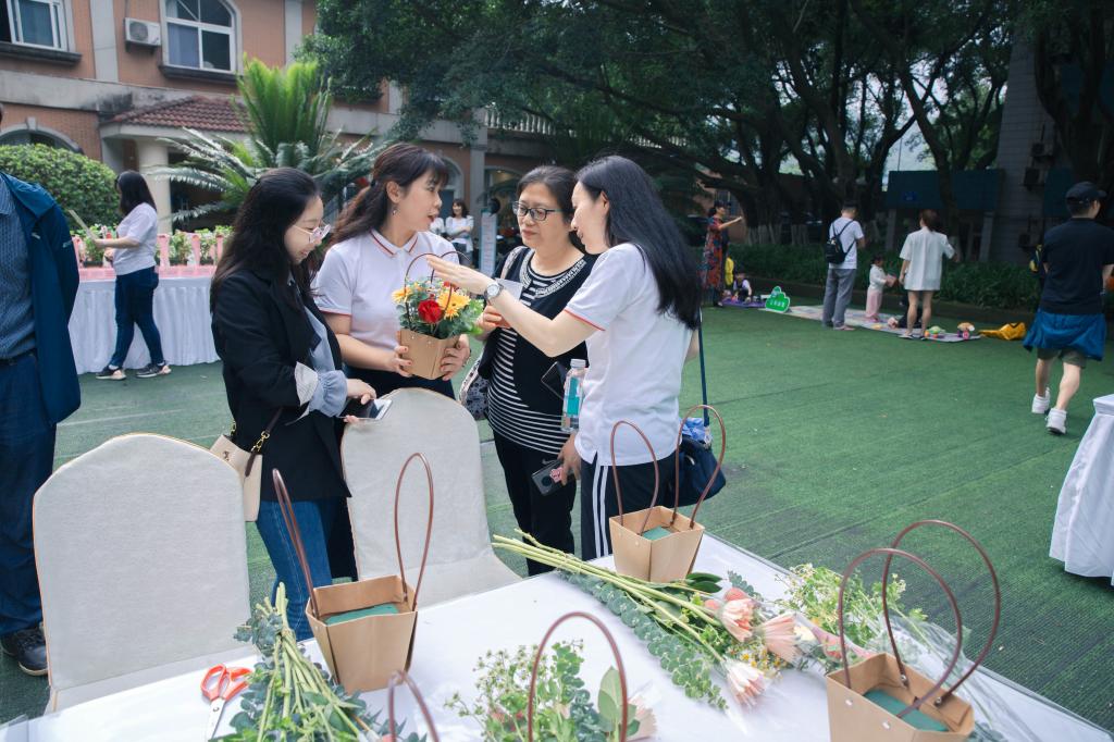 活动分为六大特色板块。“花艺雅集板块”由会议中心工作人员提供花材、花器,全体职工及家属参与体验优雅的插花艺术。“烘焙乐趣板块”由校医院和办公室工作人员带领家长和小朋友现场制作曲奇和桃酥,体验手工乐趣。“宝贝市集板块”则是在互动淘宝过程中,培养孩子们的环保理念并体验以物易物的参与乐趣。“草地活动板块”中的石膏上色和套圈活动,让大家惊喜连连,参与者在动静之间体验了动手的乐趣。“美食鉴赏板块”由膳食科东区食堂、接待科东苑餐厅精心制作提供了多款精致的中式、西式糕点,充分展示了后勤人的美食保障实力。物业动力科和基建科全程为活动现场提供保障服务。