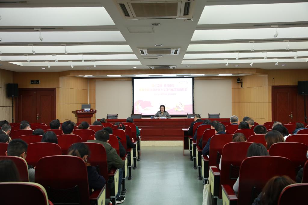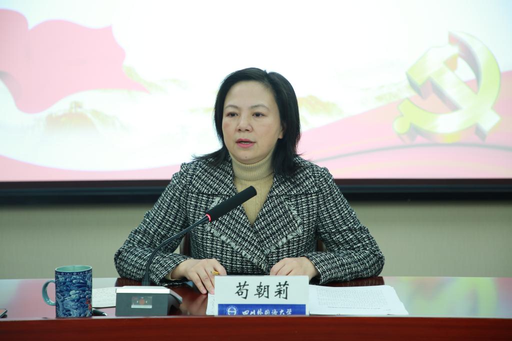 12月3日下午,党委副书记苟朝莉宣讲党的十九届五中全会精神。计划财务处、图书馆、离退休工作处、校友工作办公室、国际关系学院、法语意大利语系、教育学院、大学外语教学部教职工参加宣讲会。