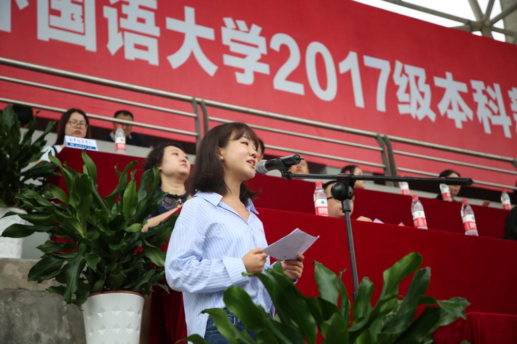 陈春蕾同学代表学长学姐在发言中与新生们分享了自己与川外的美丽遇见。刘俊凯同学代表新生在发言中表示将以坚韧不拔的勇气,铸就人生梦、川外梦、中国梦。教师代表伍凌在发言中就大学四年的学习生涯给新同学们提出了两点建议:一是树立阶段性的小目标,二是寻找足够的乐趣,丰富自己的大学生活。影视制片人、作家、94级校友曾鹏宇在发言中希望学弟学妹们珍惜当下,描绘未来,用心过好在川外的每一天。