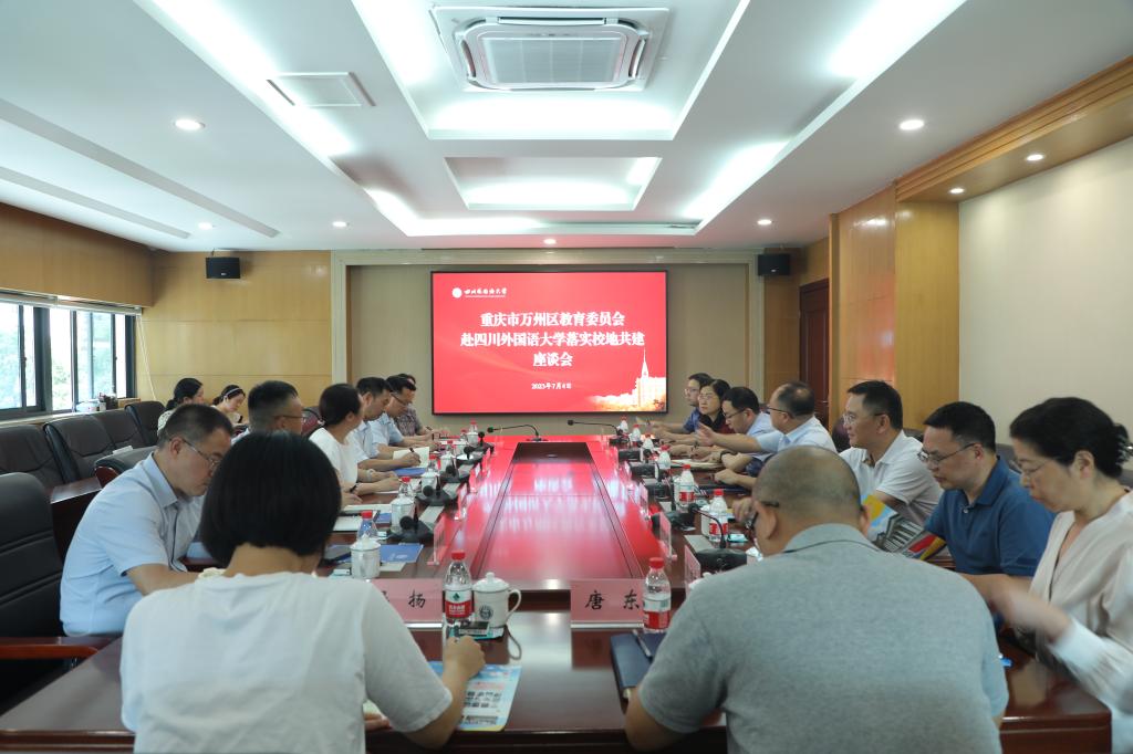 7月4日下午,根据《四川外国语大学-重庆市万州区人民政府共建重庆万州外国语学校协议书》的约定,万州区委教育工委书记、区教委主任王智勇一行到我校,与我校副校长严功军和相关学院、职能部门负责人进行座谈。座谈会由严功军主持。