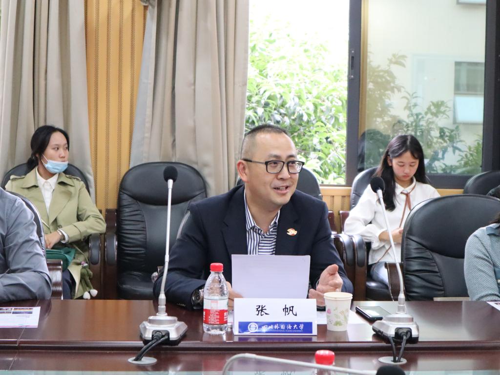 校友分会会长张帆代表校友发言,他感谢母校的培养和教育,母校对他的成长、生活、职业生涯发展产生了巨大影响。他一直在关注着母校的新变化、新成绩、新跨越,并为此感到自豪和骄傲。张帆表示会以校友分会为纽带,为学院、学校的发展添砖加瓦、尽心尽力。
