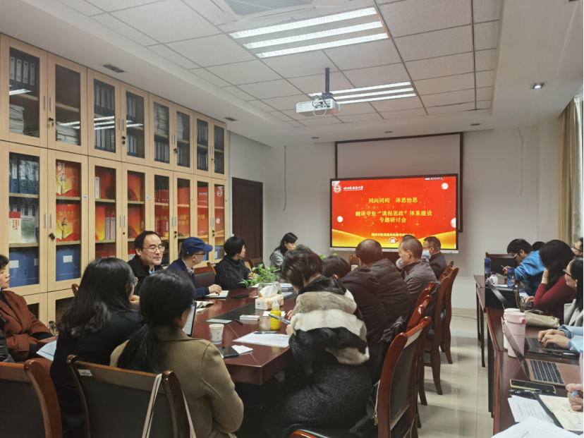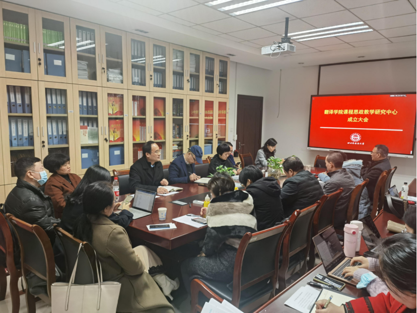 为落实教育部《高等学校课程思政建设指导纲要》和《重庆市全面推进高等学校课程思政建设工作方案》的要求,全面推进课程思政教学体系建设,形成专业课教学与思想政治理论课教学紧密结合、同向同行的育人格局,11月24日下午,翻译学院课程思政教学研究中心成立大会暨课程思政体系建设专题研讨会在翻译学院会议室举行。会议由杨志亭副院长主持,学院全体领导和教师参加了成立大会。