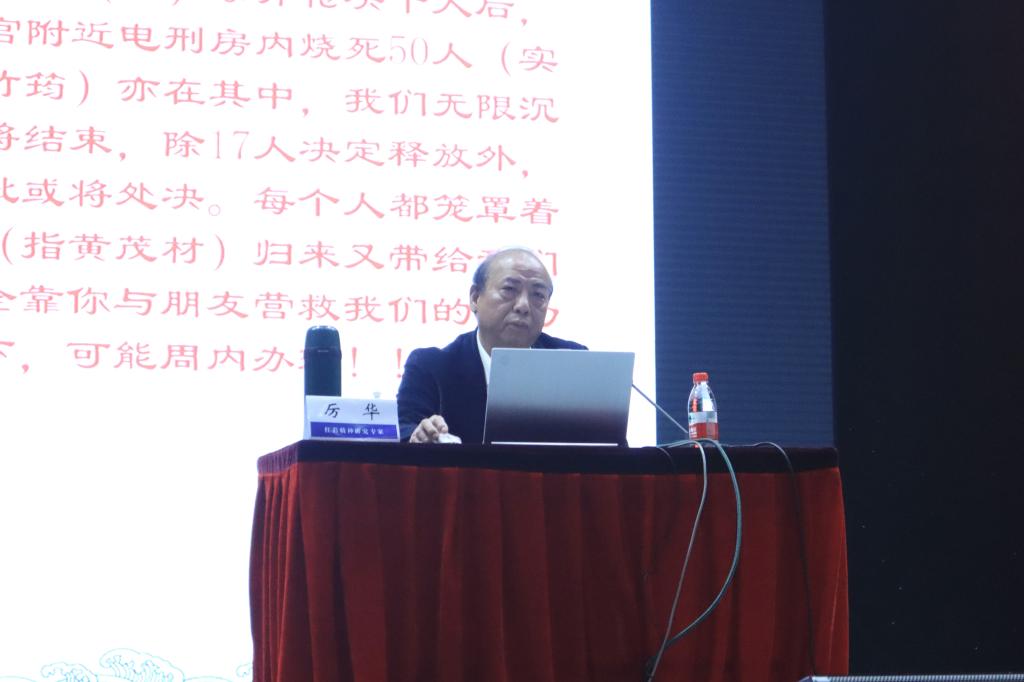 “忠诚自己的政治选择,敢于担当、襟怀坦白,是红岩英烈的‘信仰的力量’”,厉华通过讲述刘国志烈士放弃安定优裕的生活、舍身奉献革命和江竹筠烈士舍弃个人名节、用生命捍卫共产党的革命事迹,诠释了共产主义信仰的力量。他指出,忠诚是每个革命家的重要信仰,也是共产党不断发展进步的党员思想基础。他表示,老一辈革命家用生命诠释对组织的绝对忠诚,新一代青年应从中汲取力量,不断加强自身思想建设。