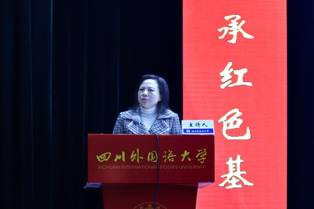 苟朝莉表示,本次报告会旨在引导我校师生学习党史国史、传承革命精神、坚定理想信念,同时也是我校贯彻全国高校思想政治工作会议精神、落实新时代爱国主义教育实施纲要的体现。青年是国家的未来、民族的希望,引导青年学习、坚定理想信念尤为重要。她指出,我校始终高度重视理想信念教育,将校史校情教育与军大传统相结合,帮助青年大学生学习了解红岩革命历史文化,传承红岩革命精神,争做时代新人。她希望川外师生以榜样为引领,以先辈为楷模,坚定理想信念,不忘历史、面向未来,在薪火相传、继往开来中不断前行。