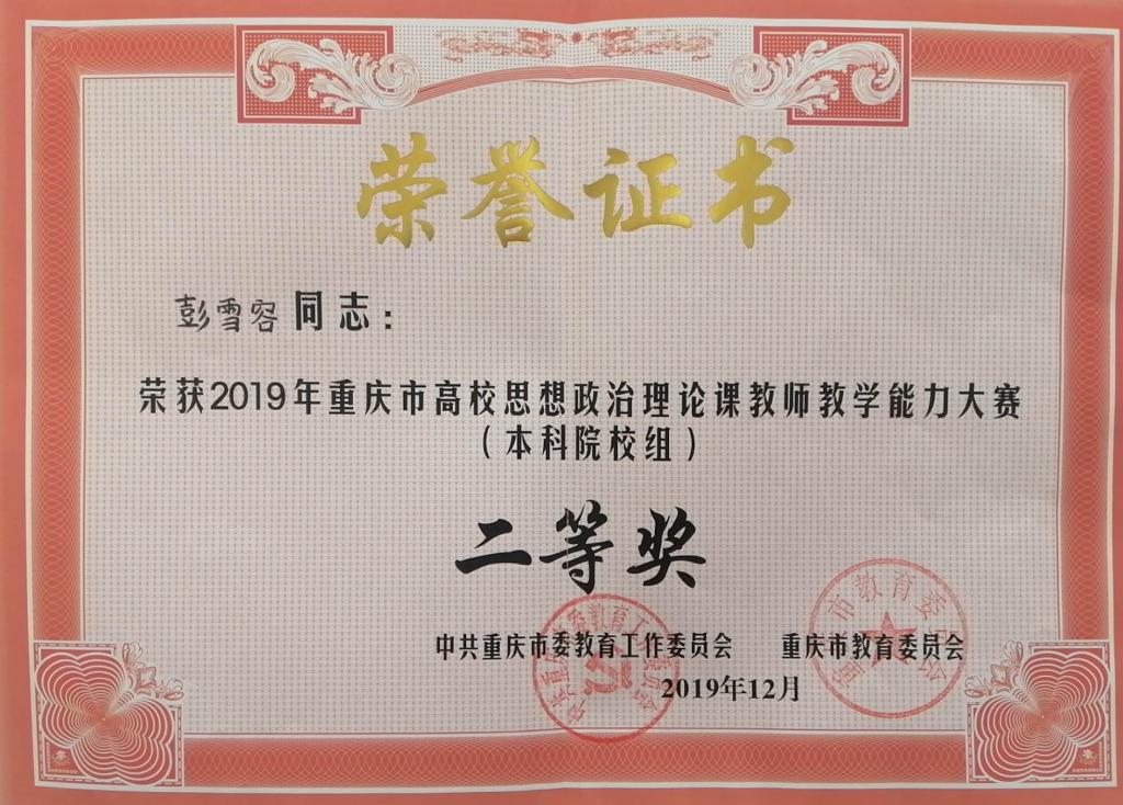共有来自全市高校的74名选手参加了决赛。经过教学设计与现场讲授两个环节的激烈角逐,我校马克思主义学院彭雪容老师、胡妍老师双双荣获本科院校组二等奖。