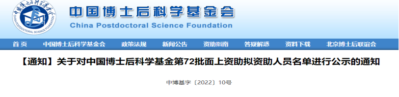 近日,中国博士后科学基金会官网公布了中国博士后科学基金第72批面上资助人员名单,我校博士后科研流动站科研人员赵国月荣获二等资助。这是今年继博士后科研人员蒋展荣获面上资助项目后的又一资助项目,也是自我校自2019年9月设立博士后流动站以来连续第三次获批中国博士后科学基金面上资助项目,体现了我校博士后人才培养在加快高层次创新人才队伍建设工作中取得的新进展。