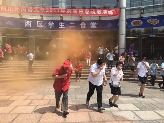 最后,所有人员在锦绣楼西区学生二食堂前集中,李教官先向大家强调了应急疏散演练的训练要点和注意事项。待各工作组人员各就各位后,工作人员在食堂内一角燃放烟雾弹,几分钟内食堂烟雾弥漫,应急疏散预案立即启动。随着现场总指挥的警报声响起,所有人员在疏散引导员的指挥下,猫着腰、捂着口鼻,迅速安全地撤离到锦绣楼外指定位置。同时,灭火组、医疗组人员也在规定的时间内到达指定地点完成了各自任务。整个演练过程紧凑有序,参与演练的员工们通过此次演练,体验到火灾发生时的现场状况,掌握了火场疏散引导和逃生的基本技能,达到了演练的预期效果。