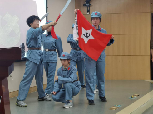 中文系教工党支部的四位老师带来的慷慨激昂的朗诵,使得一幅壮丽的祖国画卷在我们的眼前缓缓展开。在这幅画卷中,我们看见了祖国这些年来的每一次蜕变,感受到了祖国一步步走向繁荣富强的艰辛与力量。学生第一党支部用情景剧的形式讲述了改革开放的故事,现场重现了南方谈话、九二南巡等重大历史事件;他们还介绍了一国两制方针并重温了香港回归的伟大时刻,诠释了我党将改革开放进行到底的决心。学生第六党支部以《春天的故事》展现出一幅祖国不断发展的宏伟蓝图。动人的歌舞带领我们穿梭在历史滚滚的长河中,又将我们置身于祖国飞速发展的洪流里。学生第五党支部以朗诵的形式歌颂了深入人心的共产党精神,歌颂了祖国那段风雨如磐的岁月,也歌颂了祖国从站起来、富起来到强起来的伟大历史飞跃。学生第三党支部以情景剧的形式叙述了杨善洲大亮山栽树的故事。演员们用动情的表演展现了杨善洲公私分明、执着坚持、自我奉献的形象,让我们看到了共产党人在造福人民的路上展现的一身正气、勇敢向前的精神与力量。学生第二党支部用饱满的爱国情怀,赞美了祖国的壮丽山河,歌唱出了国家的辉煌今朝。伴随着充满希望的歌声,我们仿佛看见了红日东升的画卷,看见了遍地流芳的疆土。中文系学生第四党支部带来的情景剧表演让我们重温了革命年代里的青春热血。他们的表演向我们展现了中国风姿,也让我们深刻地感受到烈士们誓死战斗、坚毅勇敢的精神信念。
