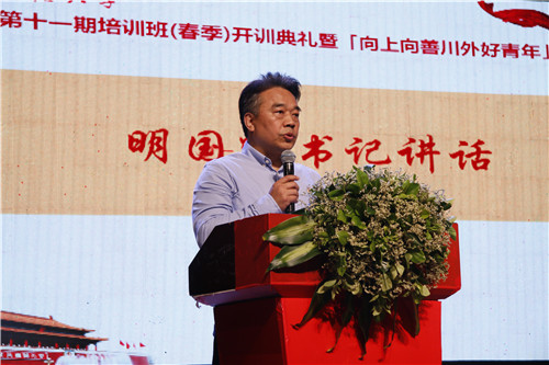 5月4日,是全体青年的节日。4日下午3时,全校各院系基层团支部书记和骨干团学干部齐聚东区大礼堂,参加红岩团校第十一期培训班(春季)开训典礼暨“向上向善川外好青年”分享会,欢度青年节。校党委书记明国辉,副校长、党委常委郑白玲,校关心下一代工作委员会副主任王之起,市青联副主席、市学联主席邱蔚,校党委组织部部长张季菁,校党委宣传统战部部长崔光军,校党委学生工作部副部长古晶,教务处处长廖巧云,以及各院系党总支书记、团总支书记等出席了活动。典礼由校团委书记丁欢主持。