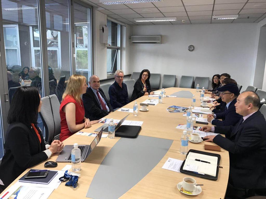 2019年3月19日至23日,我校代表团赴澳大利亚阿德莱德大学进行访问交流,取得了圆满的预期成效。代表团由翻译学院院长胡安江率团,国际处处长张幼斌、研究生院院长王仁强、图书馆馆长何燕、教务处副处长王伟、翻译学院院长助理朱海燕随团前往。阿德莱德大学国际处处长Ash Ray、人文学院副院长Mark Carroll、人文学院师资管理负责人Mark Pickfold、人文学院跨文化交际与口笔译硕士项目负责人Ning Zhang,国际处招生宣传负责人Kimberly Salafia、国际处招生工作人员Belinda Kon,就业处负责人Julia Zhao等参与接访及议题探讨。