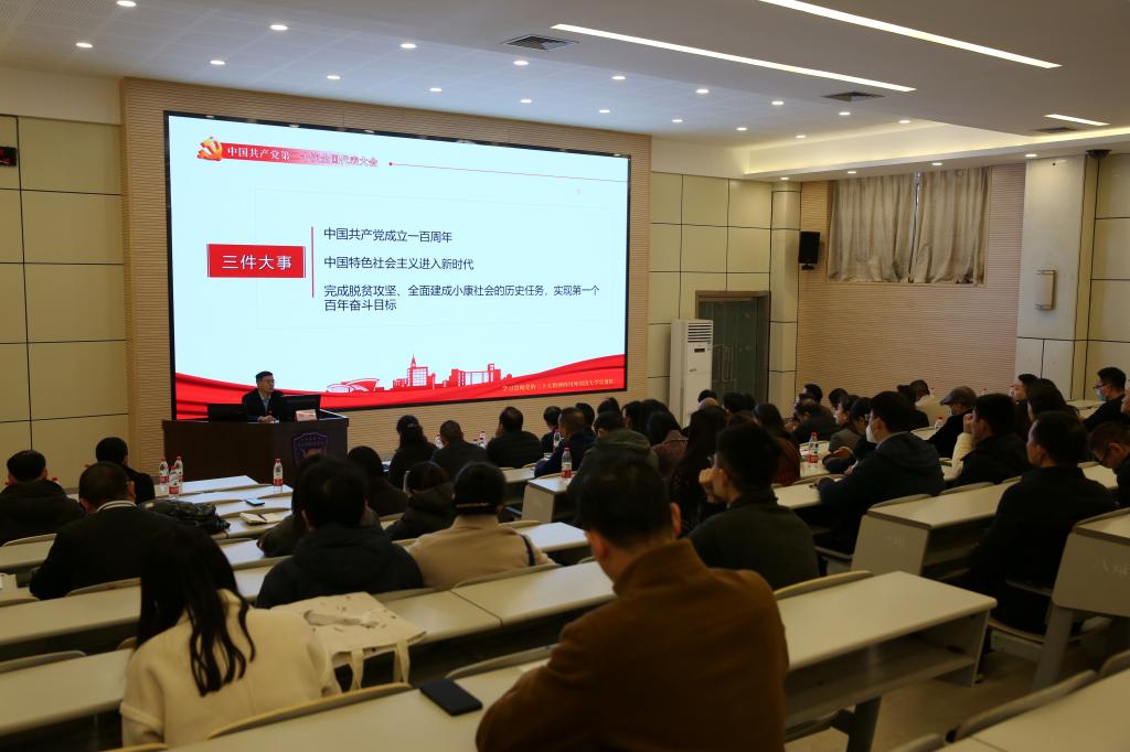 2月28日上午,市级进校园宣讲队成员、四川外国语大学学习贯彻党的二十大精神进校园宣讲分队队长、党委书记邹渝到附属外国语学校作党的二十大精神专题辅导报告。副校长郑白玲、组织部部长彭程,附中全体中层及以上干部、各支部书记共90余人参加。附属外国语学校党委书记、副校长张季菁主持。