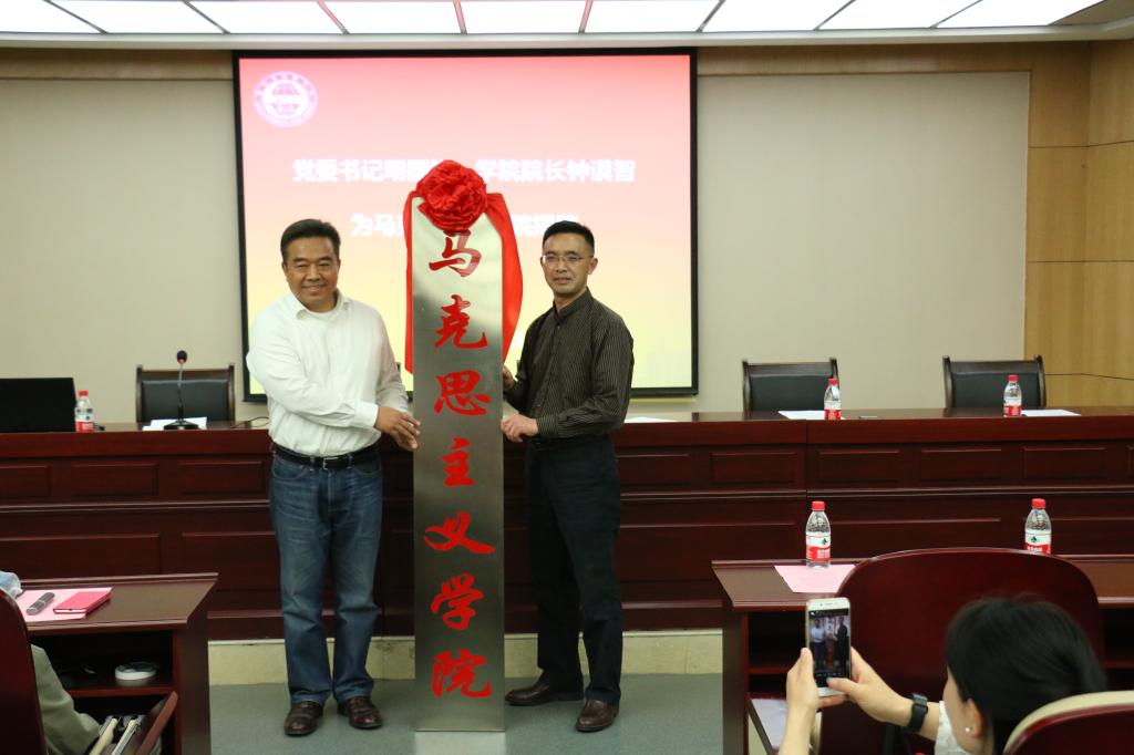 党委书记明国辉出席仪式,与马克思主义学院院长钟谟智共同为马克思主义学院揭牌。