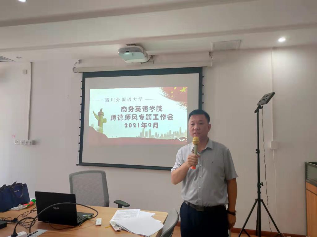 2021年9月24日,我校商务英语学院在宏文楼1-2实验室召开了师德师风专题学习会议,全体教职工参加会议。