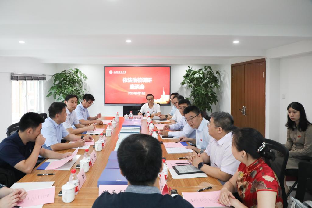 董洪川校长全面介绍了我校在推进依法治校工作中的主要经验与做法:一是加强学习,深入贯彻落实习近平依法治国重要思想和市委全面依法治市工作会议精神;二是推动依法治校与现代大学制度建设相结合;三是进一步健全科学民主的决策机制;四是不断加强师生法制教育和增强法治观念;五是进一步推进学校重大信息公开;六是强化师生法治教育宣传和组织领导。