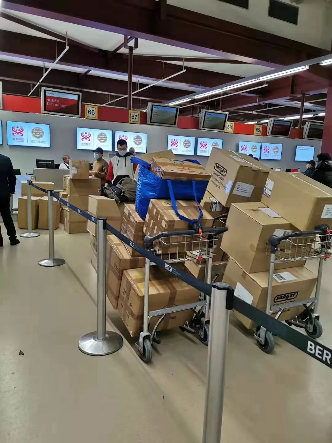 得知杨悦的难处,她的闺蜜、中学班长、川外英86级校友王利向她伸出了援手,及时牵线搭桥,联系上了柏林海航。杨悦迅速提供了绿色通道所需的材料。问题又来了,海航在柏林没有仓库,20箱口罩必须直接送到值机柜台,当作客运行李办理登机手续,这是目前最快捷和最保险的运输方式。