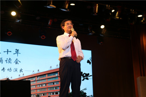 诵读会开始前,李克勇校长致辞。他表达了对傅天琳女士的敬意以及对各位嘉宾的感谢。他说,“经典诗歌诵读会在川外的上演,掀起了我校文化周的又一高潮,必将成为5月‘读书月’浓墨重彩的一笔!”
