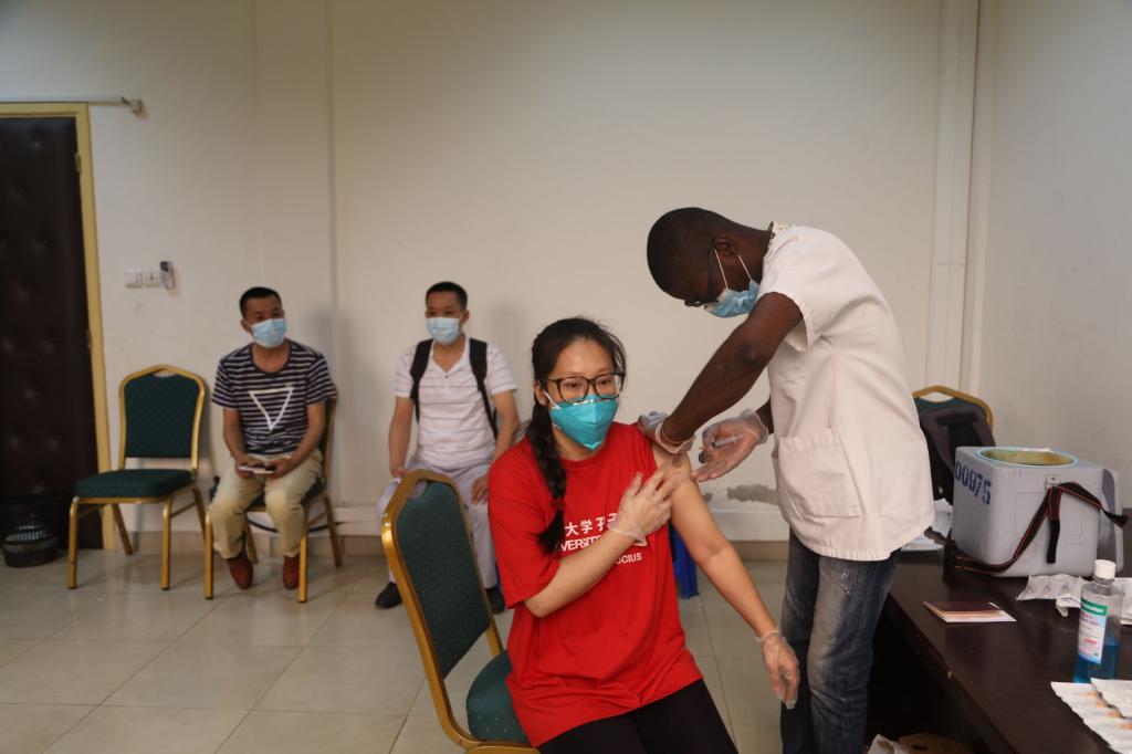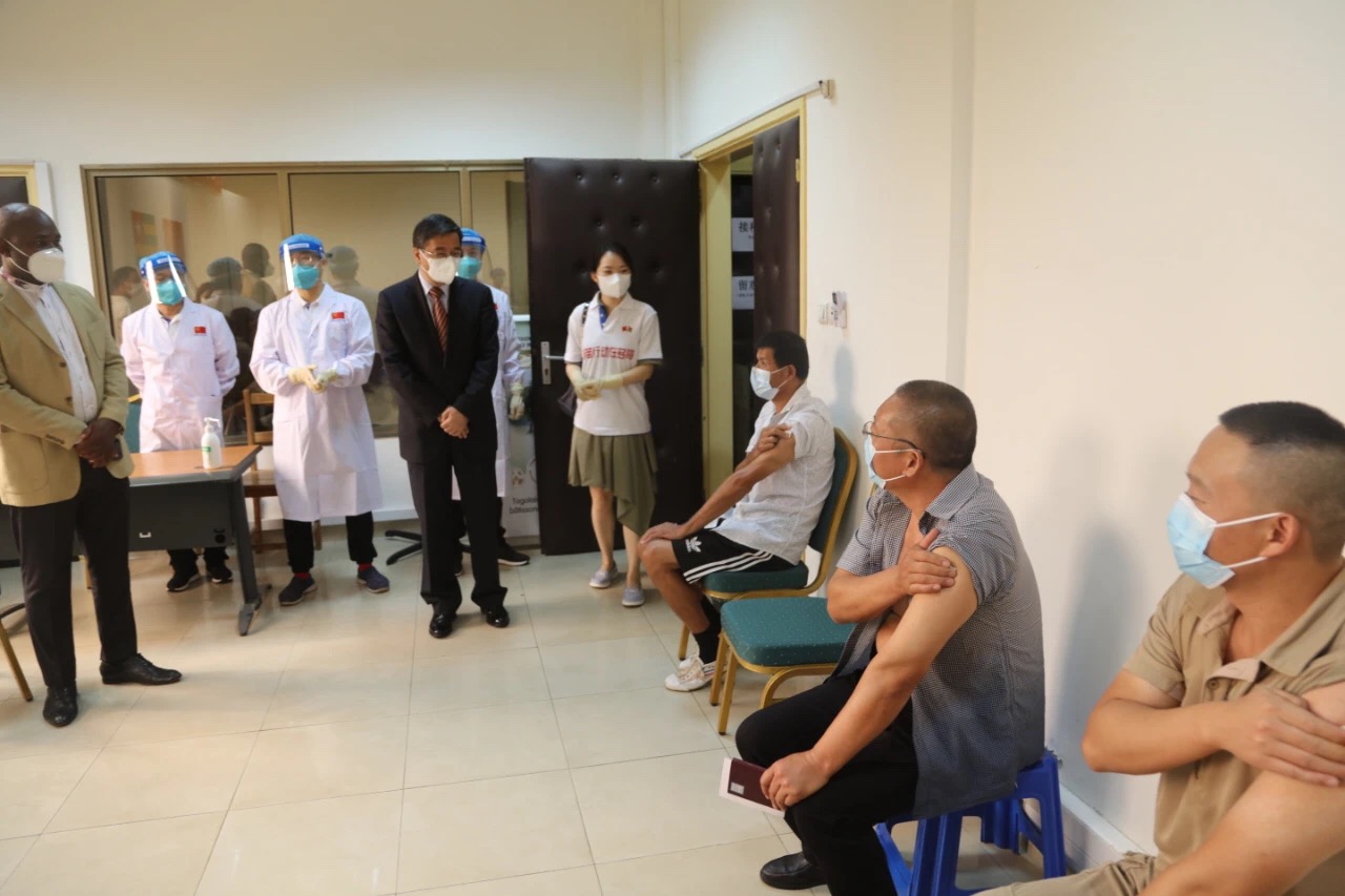 中国驻多哥大使巢卫东赴现场看望接种人员
