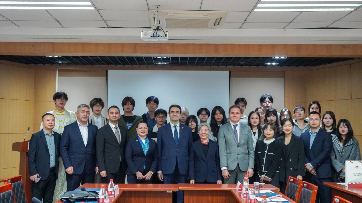 会后,塞尔丘克・于纳尔一行前往东方语言文化学院与土耳其语专业师生进行交流。土耳其语专业学生通过朗诵土耳其语诗歌对大使一行表示了欢迎。在交流环节,塞尔丘克・于纳尔表示,随着两国交流的不断深化,未来对土耳其语人才的需求将日益增长。他希望同学们刻苦学习,提升能力,为促进中土友谊作出贡献。