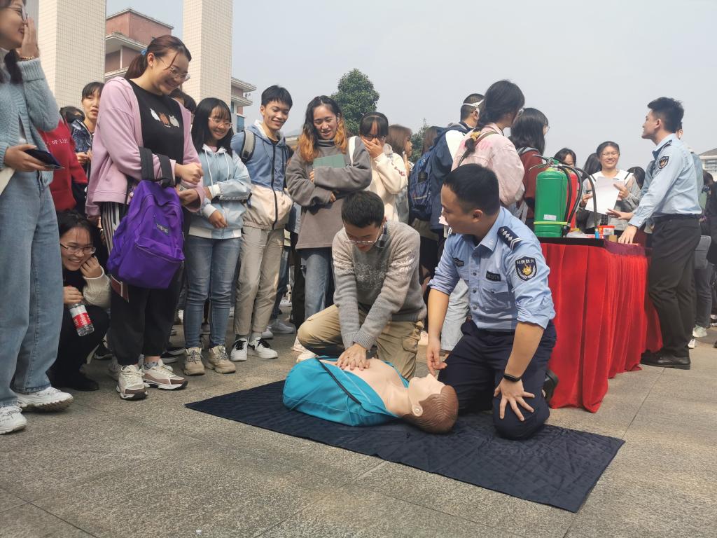 宣传活动分为消防知识展板、消防器材展台、心肺复苏培训等三大板块。消防知识展板涵盖了日常防火、灭火逃生等消防常识,吸引了众多师生驻足观看学习。