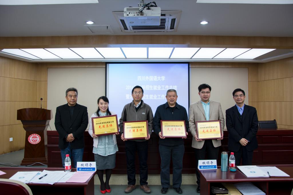 党委书记明国辉、校长李克勇为四川外国语大学2016年本科就业工作先进集体获得者颁奖