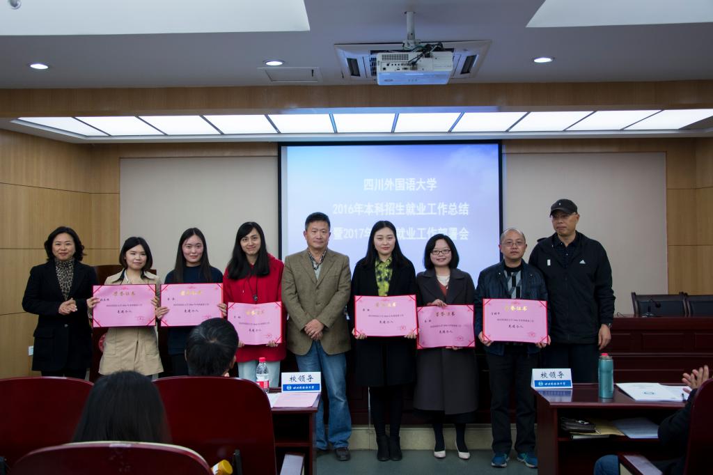 副校长李小川、郑白玲为四川外国语大学2016年本科就业工作先进个人获得者颁奖