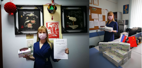 下诺夫哥罗德国立语言大学孔子学院收到寄送的口罩