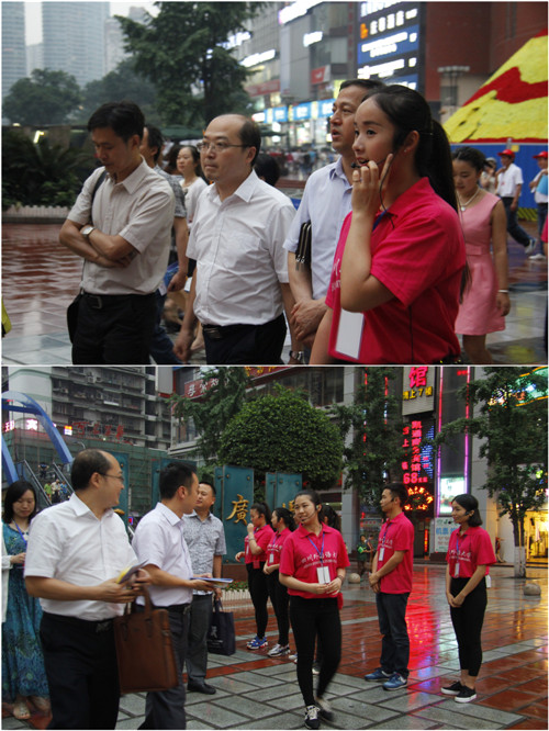 活动最后,我校志愿者带领出席活动的领导和嘉宾参观介绍了三峡广场商圈的系列特色文艺志愿服务工作和活动。据悉,我校从本月起,将积极履行校地志愿服务联盟的相关服务内容和要求,积极策划和组织在童家桥社区烈士墓小学、儿童艺校、磁器口景区以及双碑等街道、社区开展特色志愿服务活动。