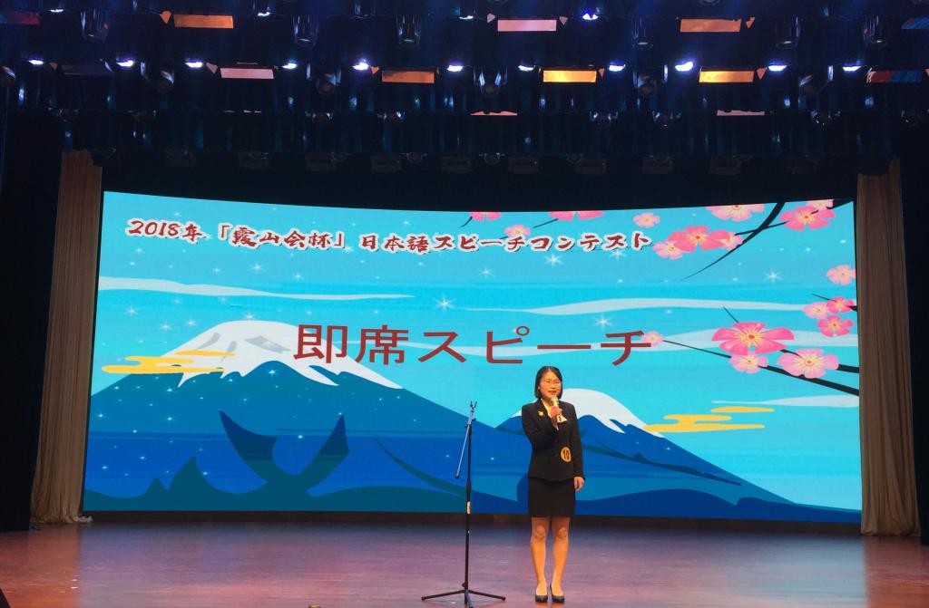 本次大赛分为命题演讲与即席演讲两个部分。命题演讲的题目为“中国に紹介した日本文化”或“世界に紹介したい中国文化”。我系何玲选择的是向世界介绍中国近年来十分流行的广场舞文化,这一新颖的选题一开始就让评委与观众眼前一亮。