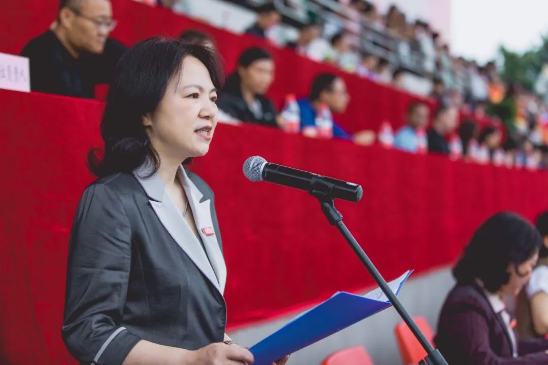苟朝莉致运动会开幕词。她代表学校党委、行政对筹备运动会的各单位、学院师生表示衷心的感谢。体育不仅是生命教育,还是一种文化现象。她指出,疫情期间,学校体育氛围依然浓厚。我校为本科生、研究生开设了丰富的体育选项课程,不断加强体育课程建设;我校学子也保持积极乐观的精神,在多项体育竞赛中斩获佳绩。“体育强则中国强,国运新则体育新”,习近平总书记高度重视体育运动发展,将体育与中国发展,民族振兴联系在一起。她强调,体育是实现中国梦的重要内容,我校应大力弘扬携手并进,荣辱与共的体育精神,使师生在运动中展示生命的厚度和宽度,让体育成为我校的名片,并预祝本次运动会取得圆满成功。