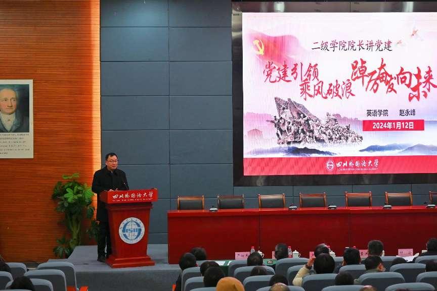 英语学院院长、党总支副书记(兼)赵永峰围绕强化学院1234发展理念,实施7大党建工程,交流了学院高质量党建引领高质量事业发展思路。在学校党委的领导下,英语学院领导班子团结带领全院师生,在科研工作、学科建设、人才引进与培养、教育教学、国际交流与合作等方面都取得了显著成绩,党员作用充分发挥,思想教育落地生根。