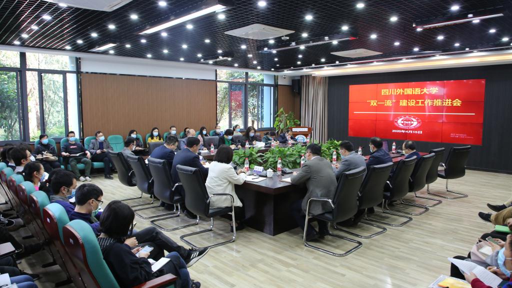 2020年4月15日,我校召开“双一流”建设工作推进会。党委书记邹渝、校长董洪川、副校长郑白玲、副校长祝朝伟出席会议,各院系和相关职能部门负责人、院系学科秘书参加会议。会议由董洪川主持。