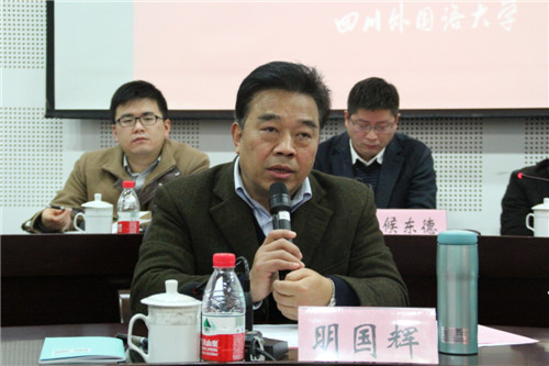 最后,明国辉书记代表学校作了总结讲话。他指出,很感谢各位专家对研究中心的鼎力支持和给予的中肯建议,感谢市教委对学校的信任。学校高度重视研究中心的建设工作,党委会明确由李克勇校长担任中心主任,主要是为了协调兄弟院校和校内各院系、各语种的研究力量,共同推动研究中心的各项工作。他期盼各兄弟院校的专家团结协作、协同创新,期望校内的教授们处理好本职工作与研究中心的工作的关系,共同努力把研究中心的各项工作做好,做出好的成绩,获得业界的认可。